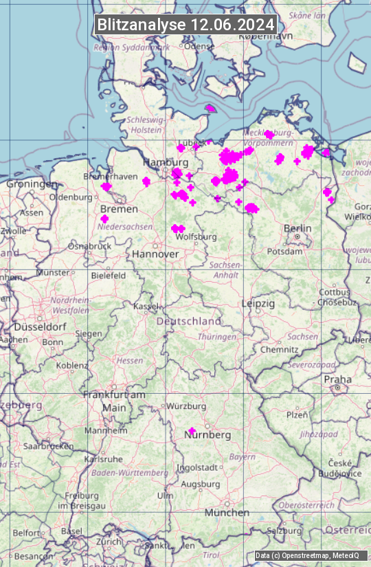 Wenn Sie bei einem Blitzschaden oder Überspannungsschaden einen Nachweis für Ihre Versicherung benötigen, können Sie eine Blitzauskunft für den 12.06.2024 abrufen oder unsere Meteorologen erstellen ein Blitzgutachten für Sie.